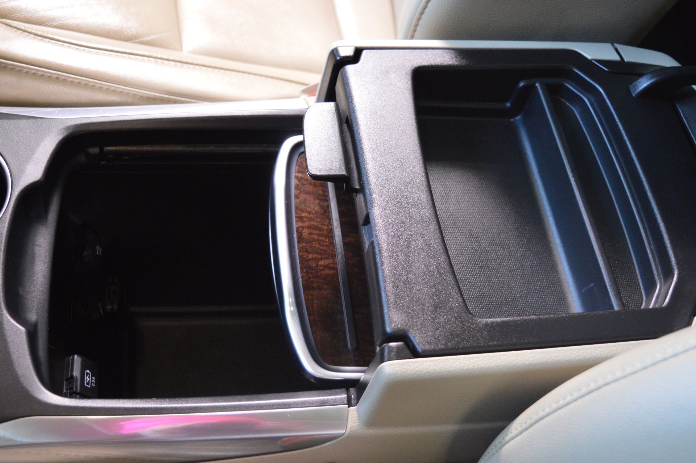 Floor console storage: Covered floor console storage